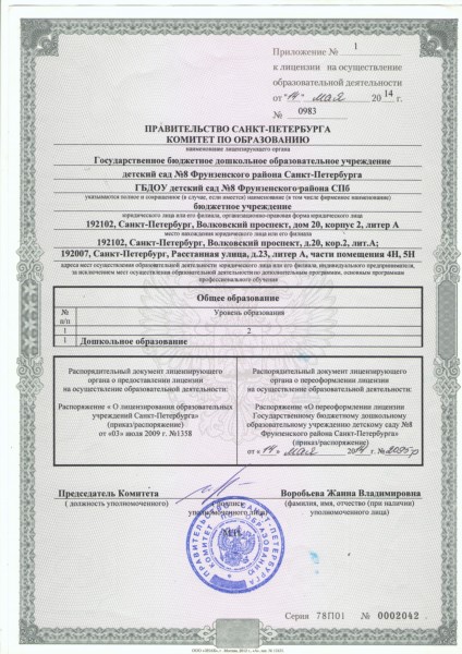 Адрес местонахождения образовательной организации* 192102 Санкт -Петербург, Волковский проспект, дом 20, корпус 2, литер А - основная площадка,192007,Санкт -Петербург, Расстанная улица д. 23, литер А,части помещения 4Н,5Н - 2 площадка